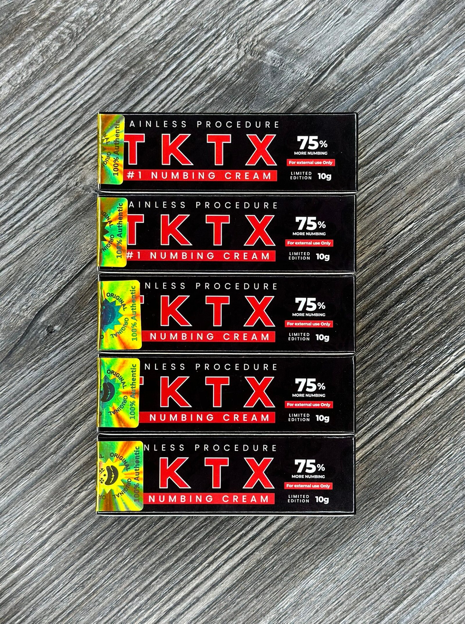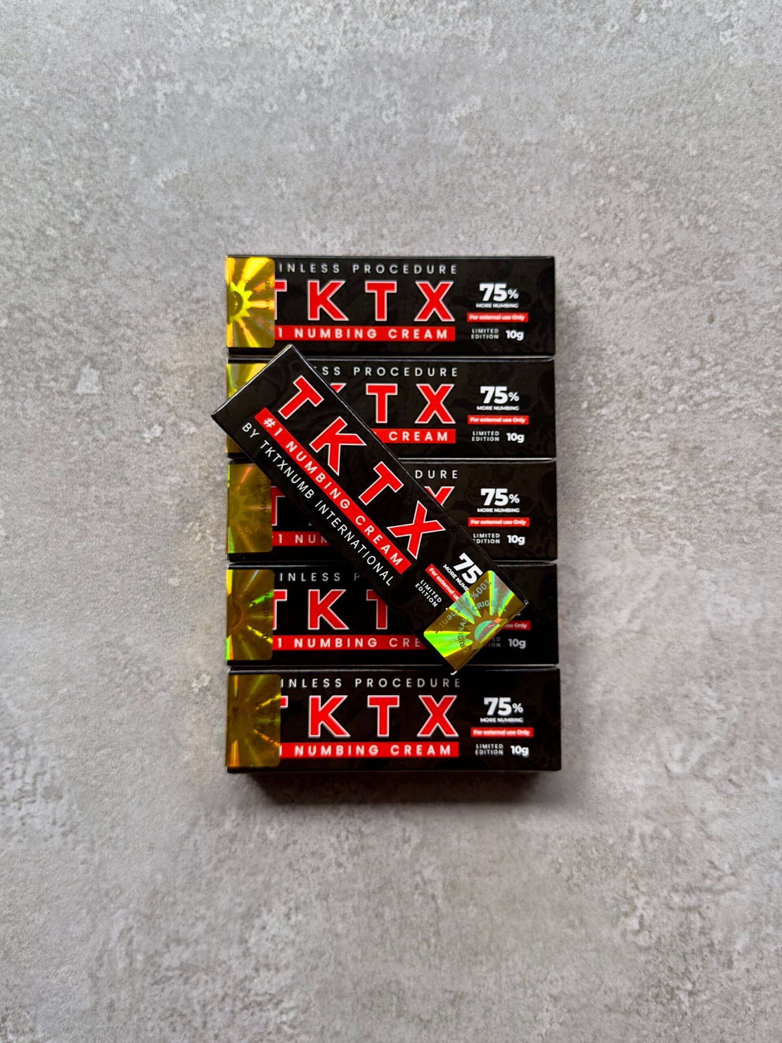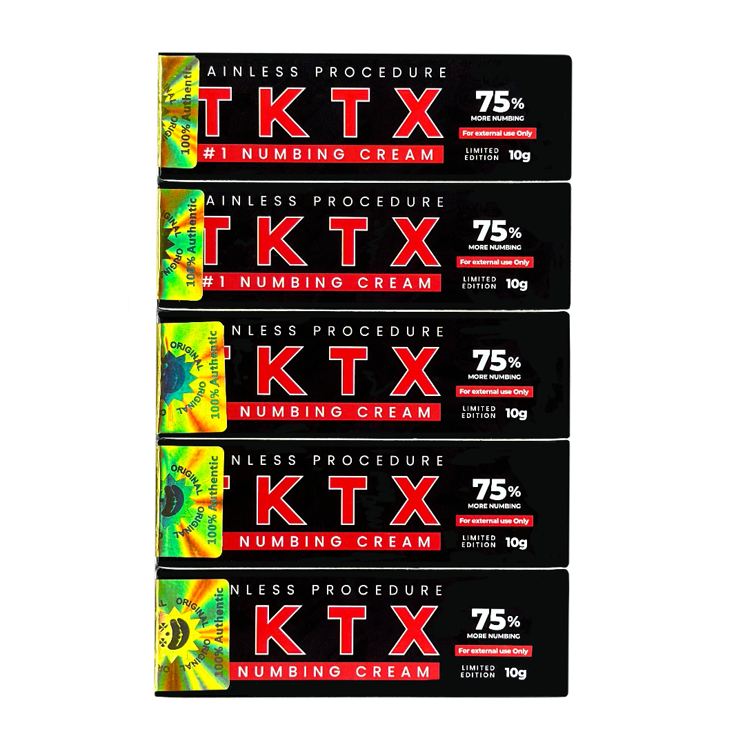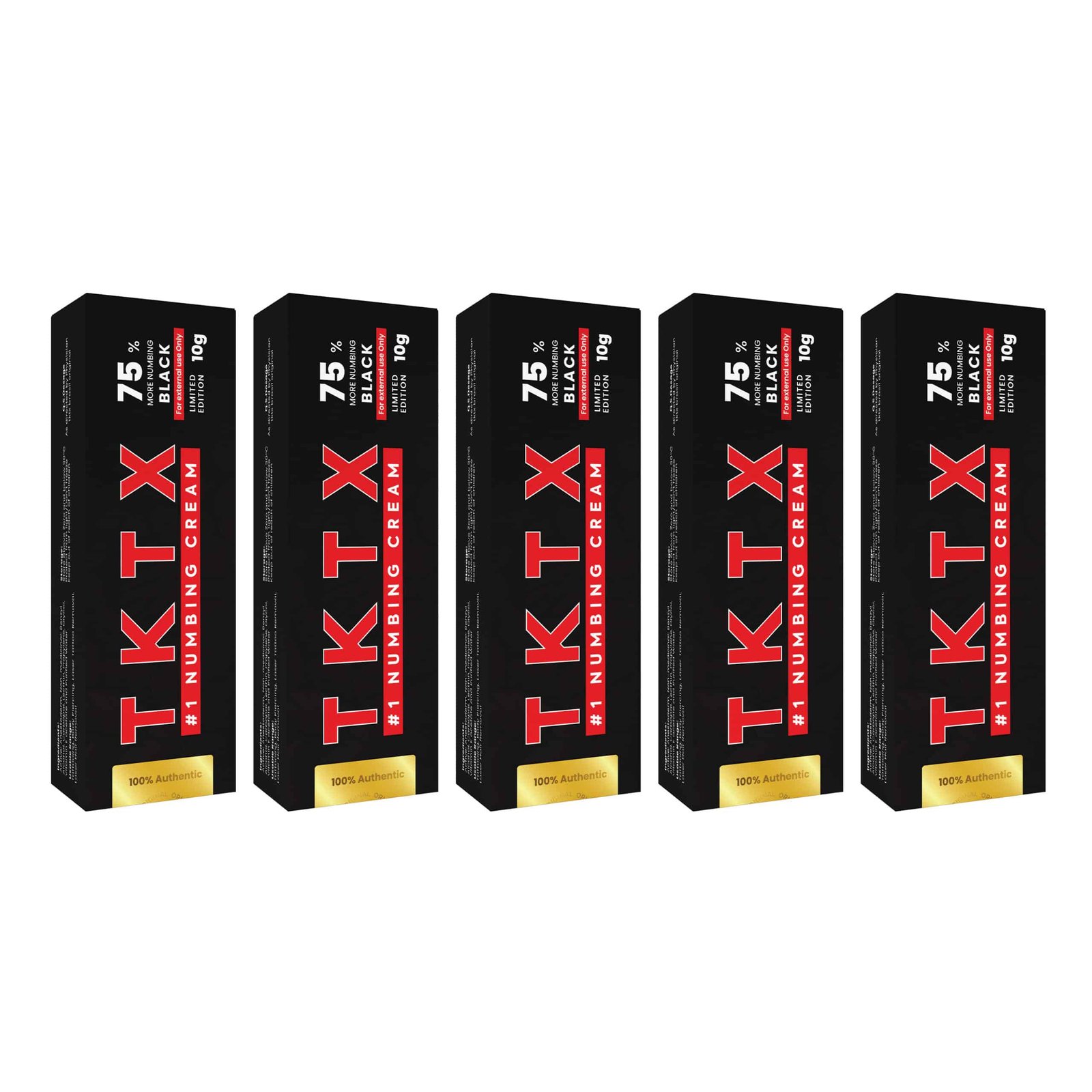 TKTX Numbing Cream Black 75% – 5 Pack is designed for individuals and professionals who need dependable comfort support during tattoos and cosmetic skin procedures. With five 10g tubes included, this pack provides enough product for multiple sessions, larger treatment areas, or regular studio use.